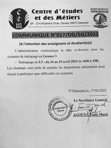 L’administration communique les dates ci dessous pour les rattrapages du niveau Licence d’une part et la seconde session normale du niveau Master II d’autre part.